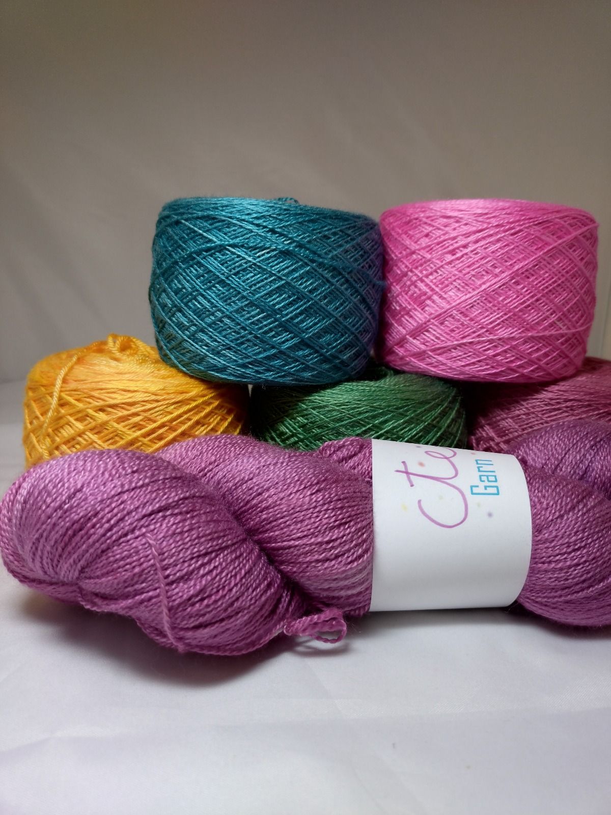 Me er eit lite garnfargeri og fargar garn både med planter og med syrefargar