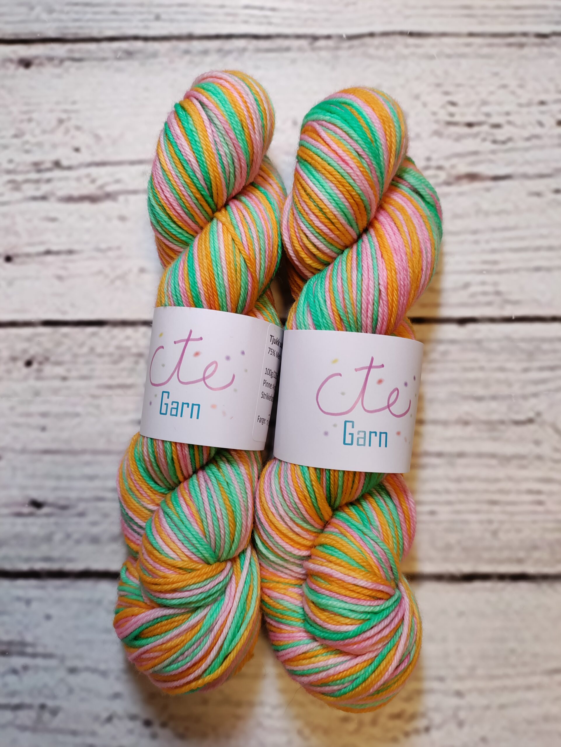 Dette garnet gjev striper som går over 2-3 omgangar når det er tre fargar i hespet og 3-4 omgangar når det er to fargar.